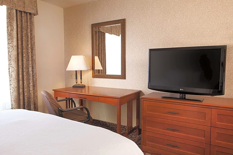 A 37-inch flat-screen TV and a refrigerator are included in this room.